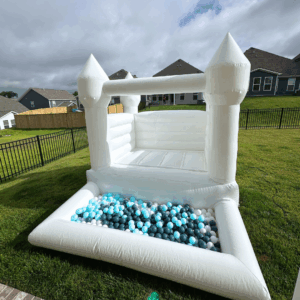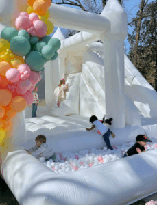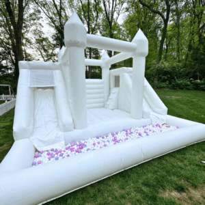 The G.O.A.T is the ultimate 3-in-1 combo that includes a bounce area, slide, and massive ball pit! This all-white beauty is one of our most popular rentals because it offers hours of fun for all ages. The ball pit comes filled with white balls, with an option to add a sprinkle of color for a custom touch.
