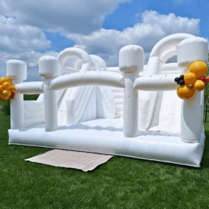 Get ready for the ultimate test of fun with The Challenger, an all-white obstacle course that’s perfect for thrill-seekers! This massive inflatable features an exciting climb, challenging obstacles, and a huge slide that leads into a massive ball pit area. Whether you’re using it dry with colorful ball pit balls or making a splash with water, The Challenger guarantees a year-round adventure that keeps everyone entertained!